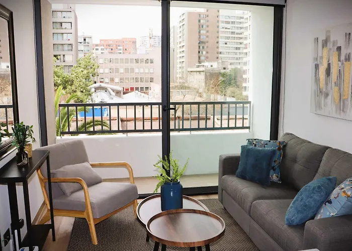 Para aproveitar as suas ferias em Santiago, fique no o apartamento Hom L 7 Minutos Del Metro Ideal Trabajo, Estudio, Turismo Santiago de 1 quartos, que está a aproximadamente 20 minutes a pé do Museo Palacio Cousiño e a uma distância de 4.4 km de Jardín Mapulemu. Este apartamento dispõe de pátio com vista para a cidade.